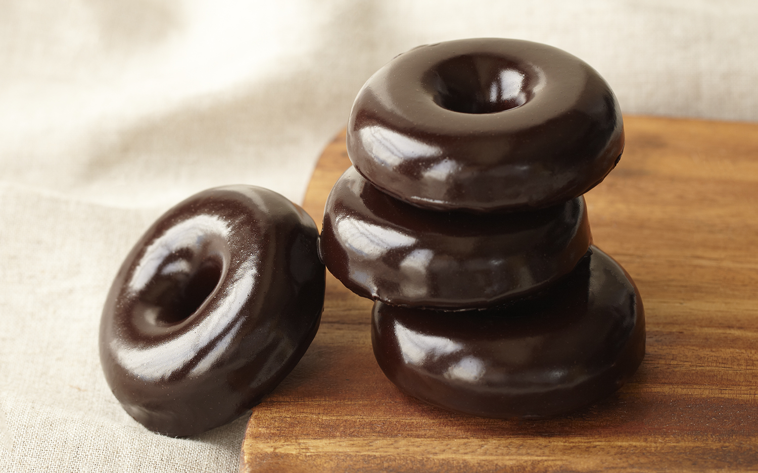 しっとり食感のチョコドーナツに、艶やかなとろけるグラサージュをコーティングしました。しっとり濃厚で芳醇なチョコドーナツです。
