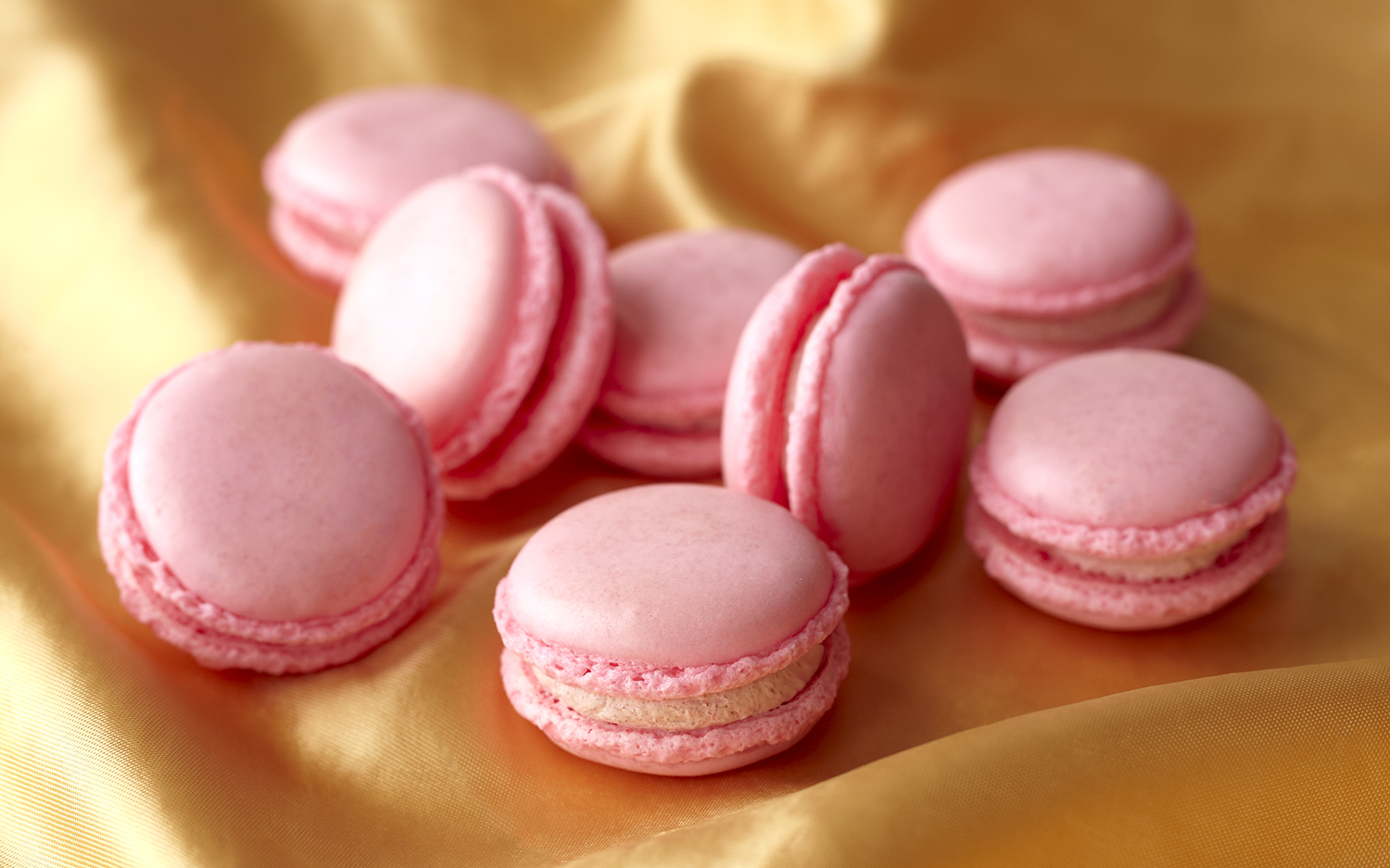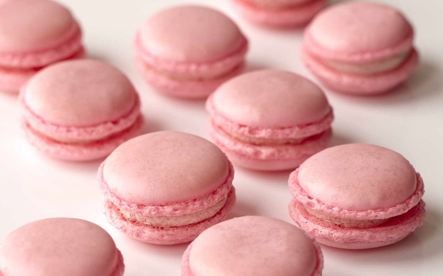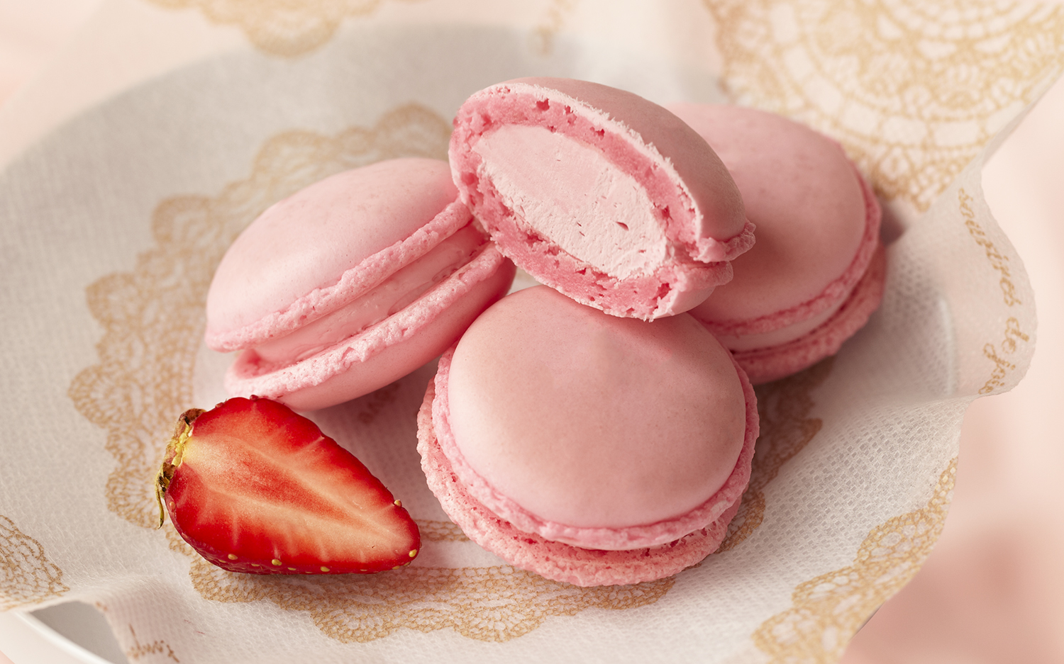 可愛らしいピンク色の苺マカロン。